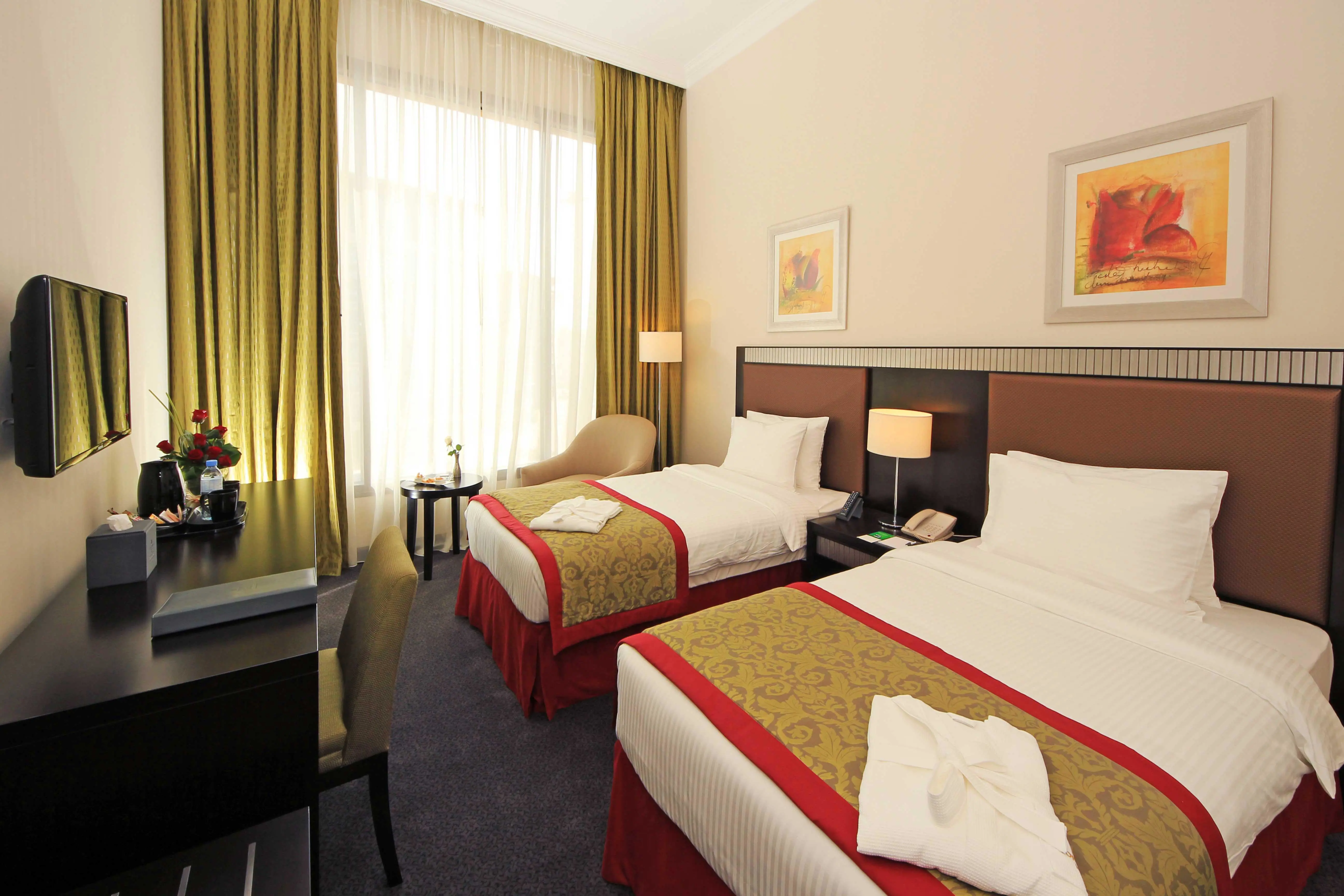 The hotel has restaurants serving oriental and international cuisine. Guest can be served breakfast in the room upon request. Room service is available 24 hours.
