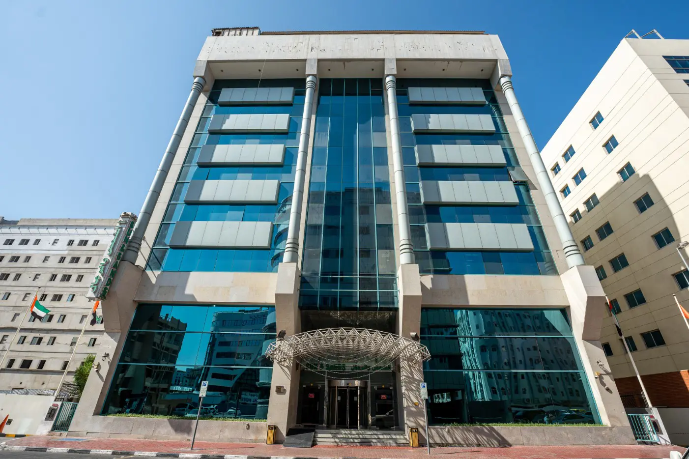 The hotel is located in the centre of Dubai, close to the shopping centre and the famous Clock Tower. It is a five-minute drive from Dubai International Airport and Dubai's business and shopping districts.
