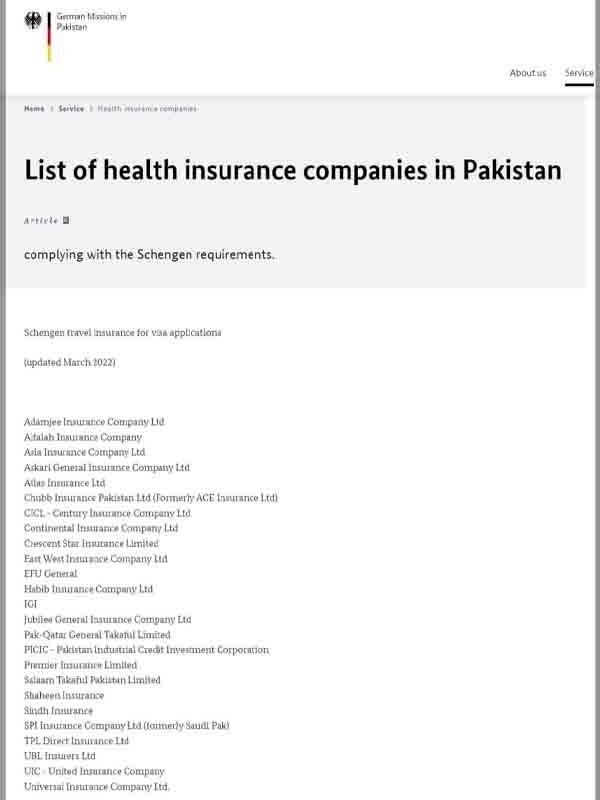 Every Schengen embassy in Pakistan provides a list of authorized travel insurance providers who operate in Pakistan. The list is regularly updated and must be followed when applying for a visa to the respective country. Given below is the latest list of insurance companies for Germany visa. Make sure you have purchased the right travel insurance before you apply for a German visa. The German embassy will not accept your visa application if you have not provided proof of valid travel insurance.