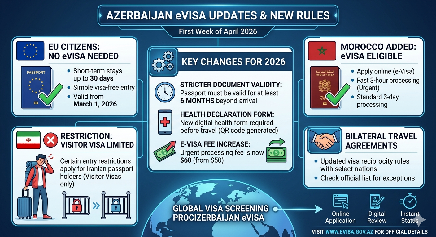 The Republic of Azerbaijan has recently introduced a series of significant Azerbaijan eVisa Updates & New Rules aimed at modernizing its border security and simplifying the entry process for international travelers. As of April 2026, these changes represent a major shift in the country's digital infrastructure, impacting everything from application costs to biometric requirements. For anyone planning a visit to the "Land of Fire," staying informed on the latest visit visa updates and the new visa regulations is critical for a smooth journey.