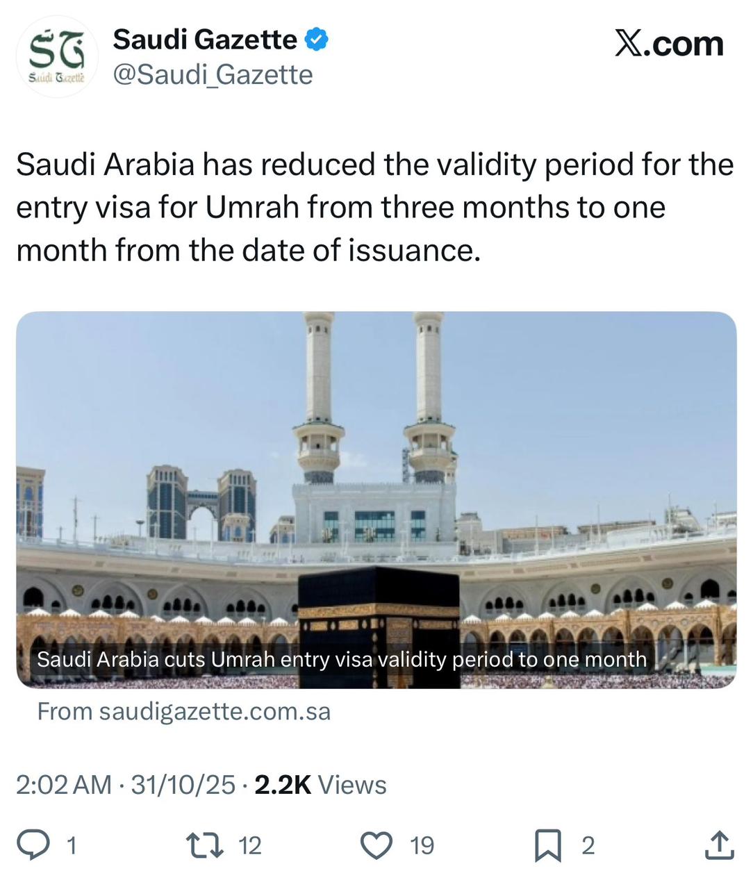 The shortened validity period allows authorities to better monitor entry timelines and manage the number of active visas, reducing the risk of overstays or misuse of the pilgrimage visa.