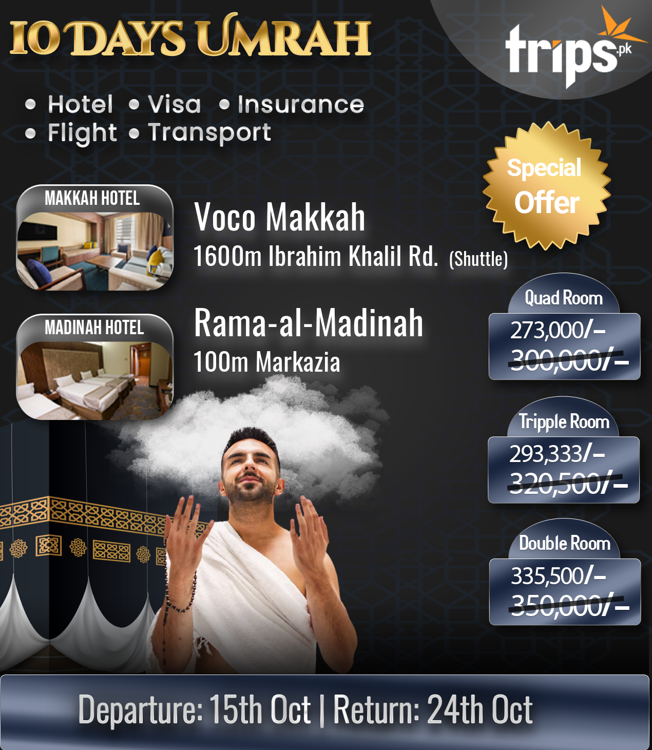 Begin your Umrah journey with complete peace of mind. We take care of flights, hotels, and transport everything — so you can focus only on your prayers and peace. https://www.trips.pk/umrah/