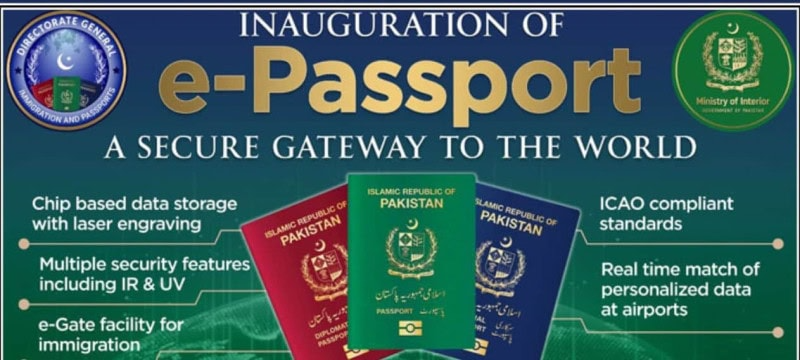 The e passport Pakistan is a very secure travel document. It has an electronic chip affixed to one of the pages of the normally prescribed passports in which the bio-information of the passport holder will be recorded.