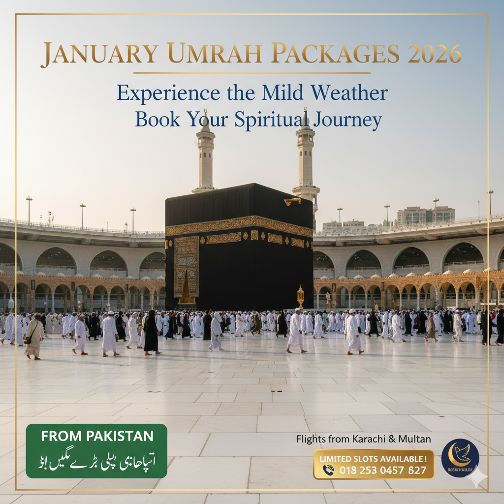 Whether you choose a luxury umrah package for january 2026 from karachi or a modest cheap umrah packages january 2026 multan, the spiritual reward remains the same. The high volume of interest in january umrah packages is a testament to the beauty of Makkah and Madinah during the winter.