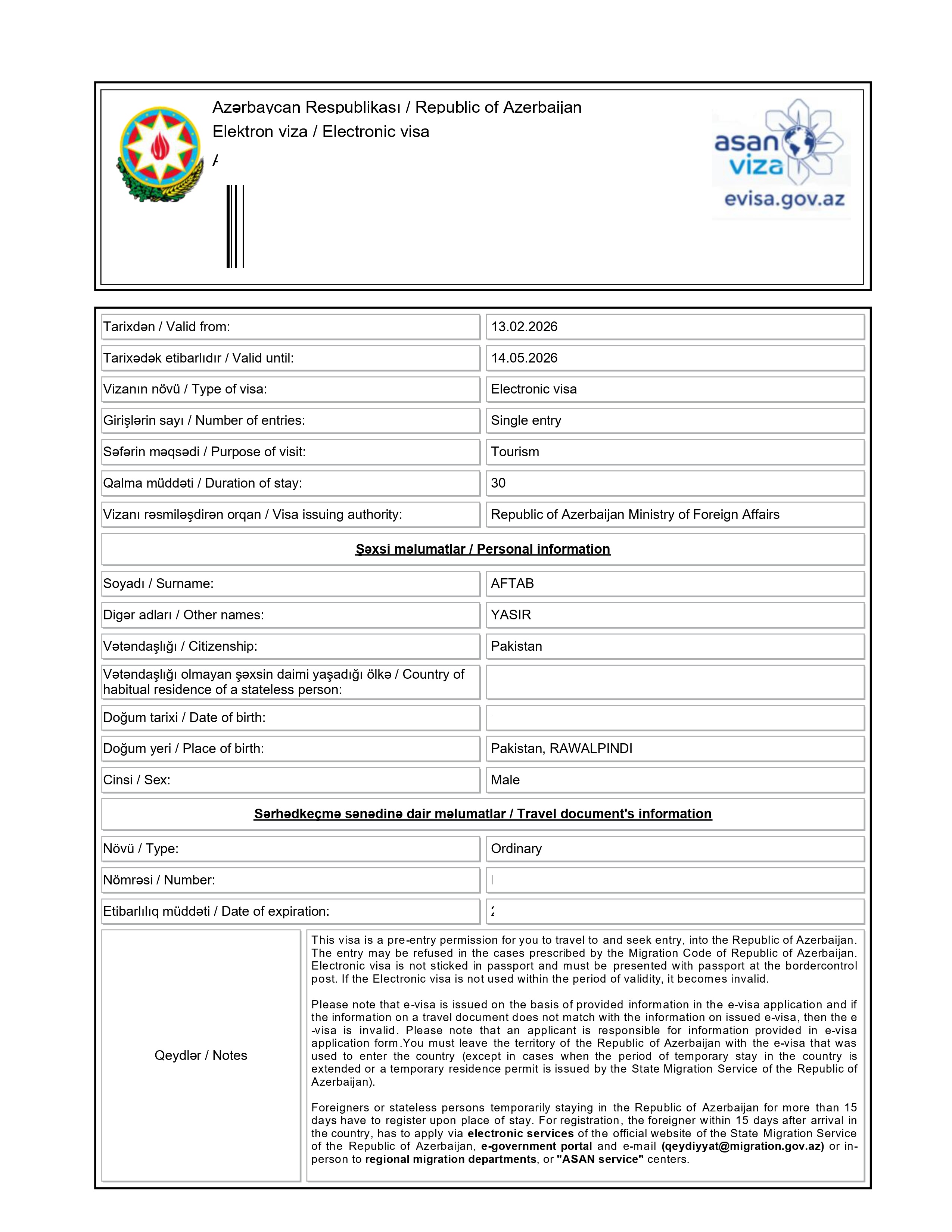 If you are seeking to obtain an Azerbaijan visa for Pakistan then you will feel relieved to know that there is another easy way to apply for a visa, the Government of Azerbaijan offers the E visa for Azerbaijan from Pakistan. The Azerbaijan E visa for Pakistan which is also known as Azerbaijan electronic visa is the easiest and most convenient way to apply for visa.