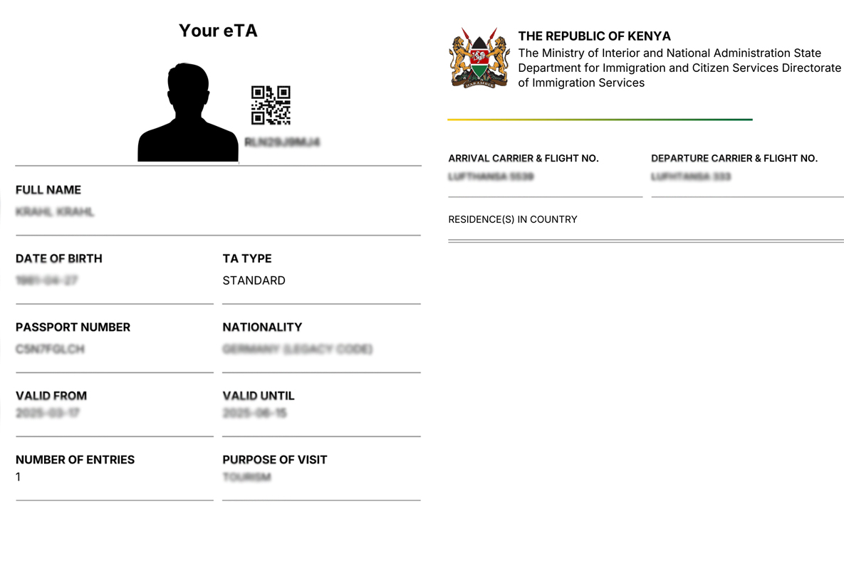 | Kenya eVisa (single entry) | ~USD 50 | Within 24–72 hours |