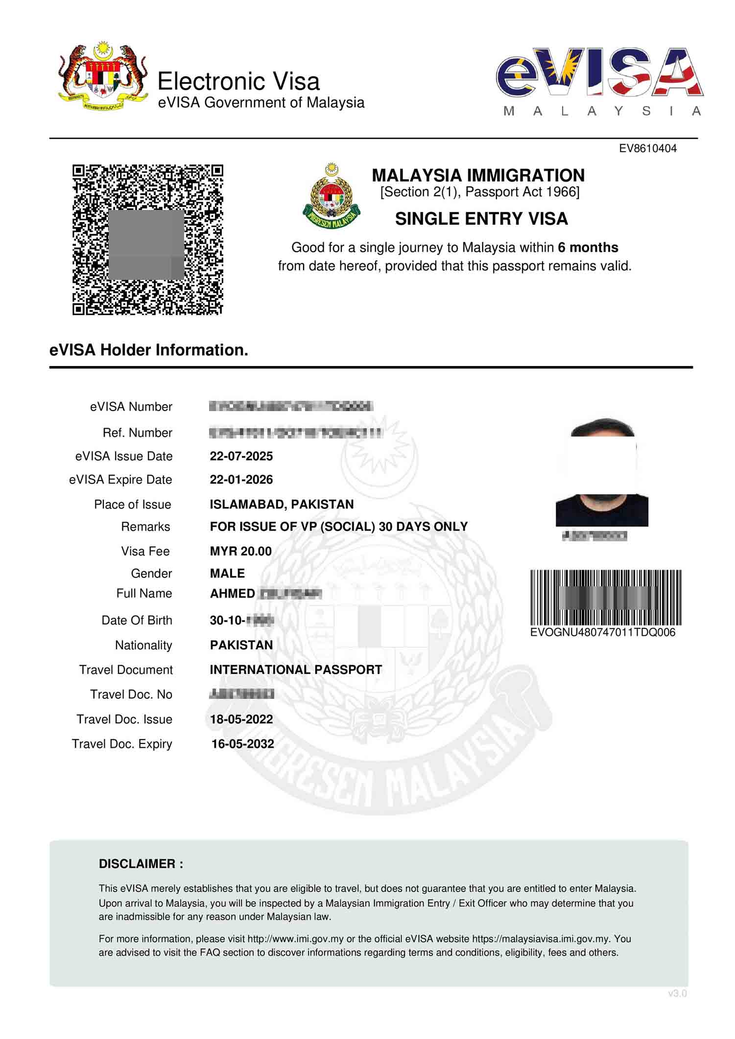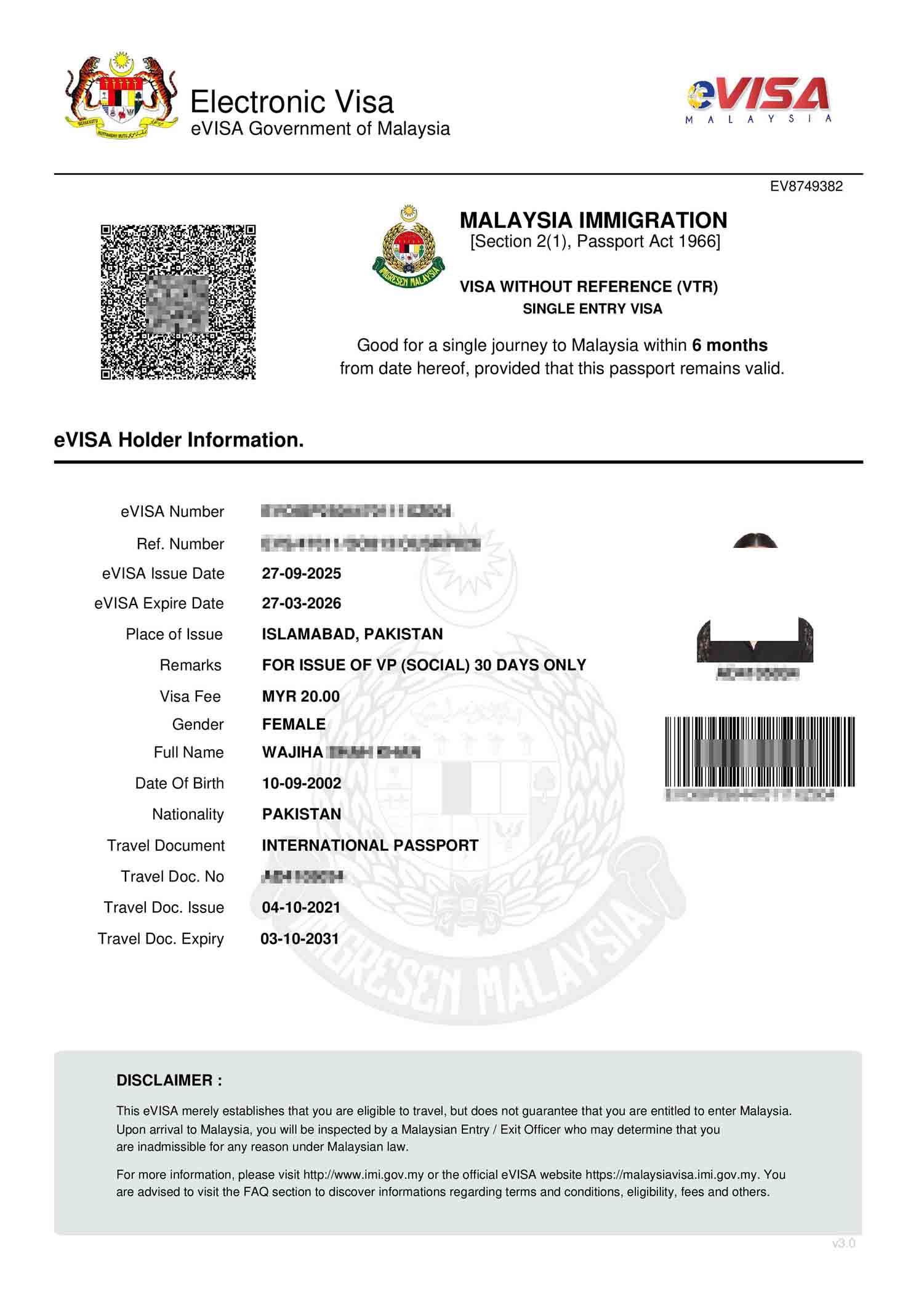 Ans: To verify that your Malaysia visit visa is original or fake, carefully examine the passport's stamp or visa sticker. Examine the information like the name of the visa holder, passport number, the number of entries permitted (single or multiple), and any specific conditions or restrictions.